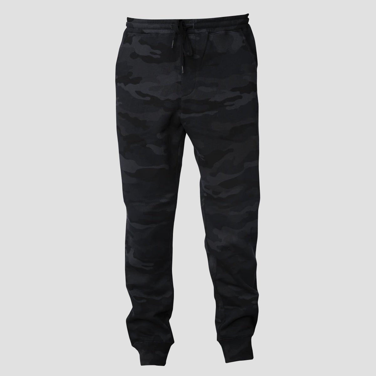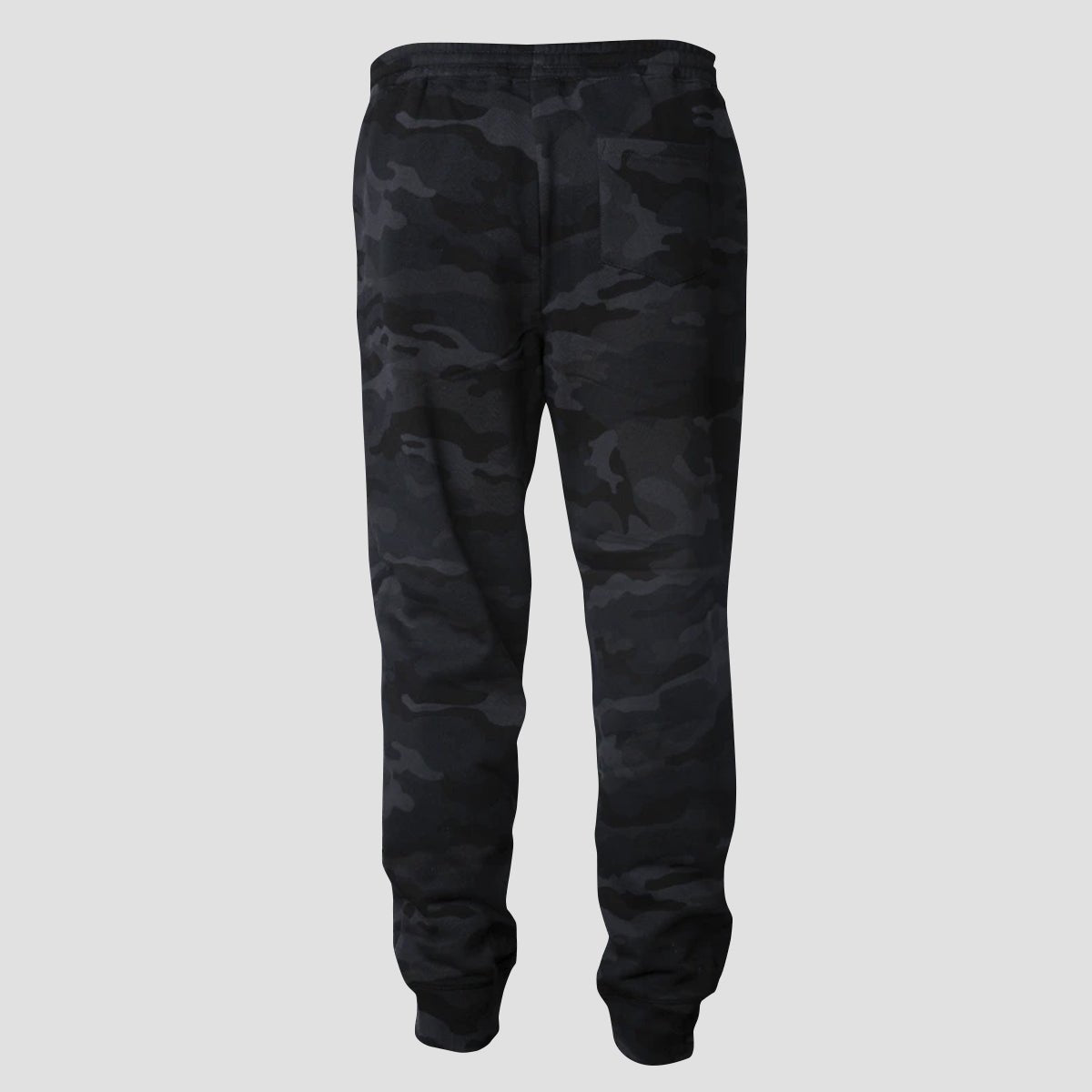 Ride the couch or hit the gym (inside your home of course) with 100% soft cotton black camo joggers. Side pockets and right back pocket. The fit is true to size, relaxed and the feel is between medium and heavyweight, think of old school 80's sweatpants built for war.